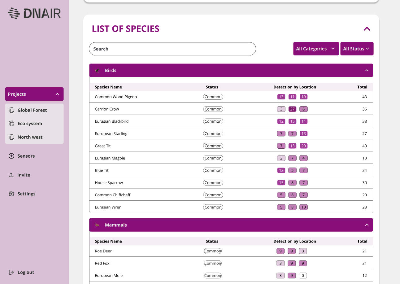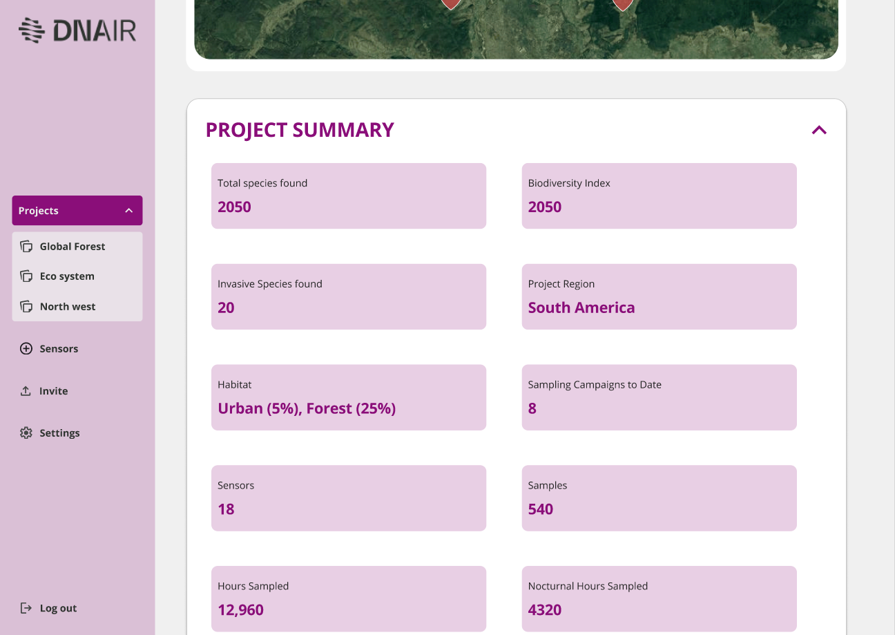 Designing a user-friendly frontend interface for data visualization, including a Map View, Sampling Events, and biodiversity metrics like Species Richness.312